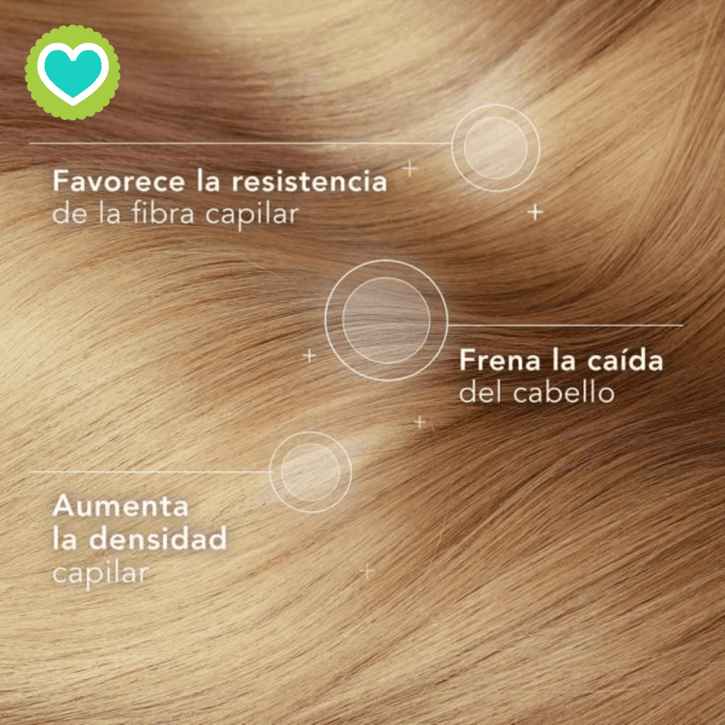 - Nutre y mejora la estructura del cabello con vitaminas B5, B6, B8, el Mijo, la Ortiga, la Cola de Caballo, el Bambú y el Ginkgo.