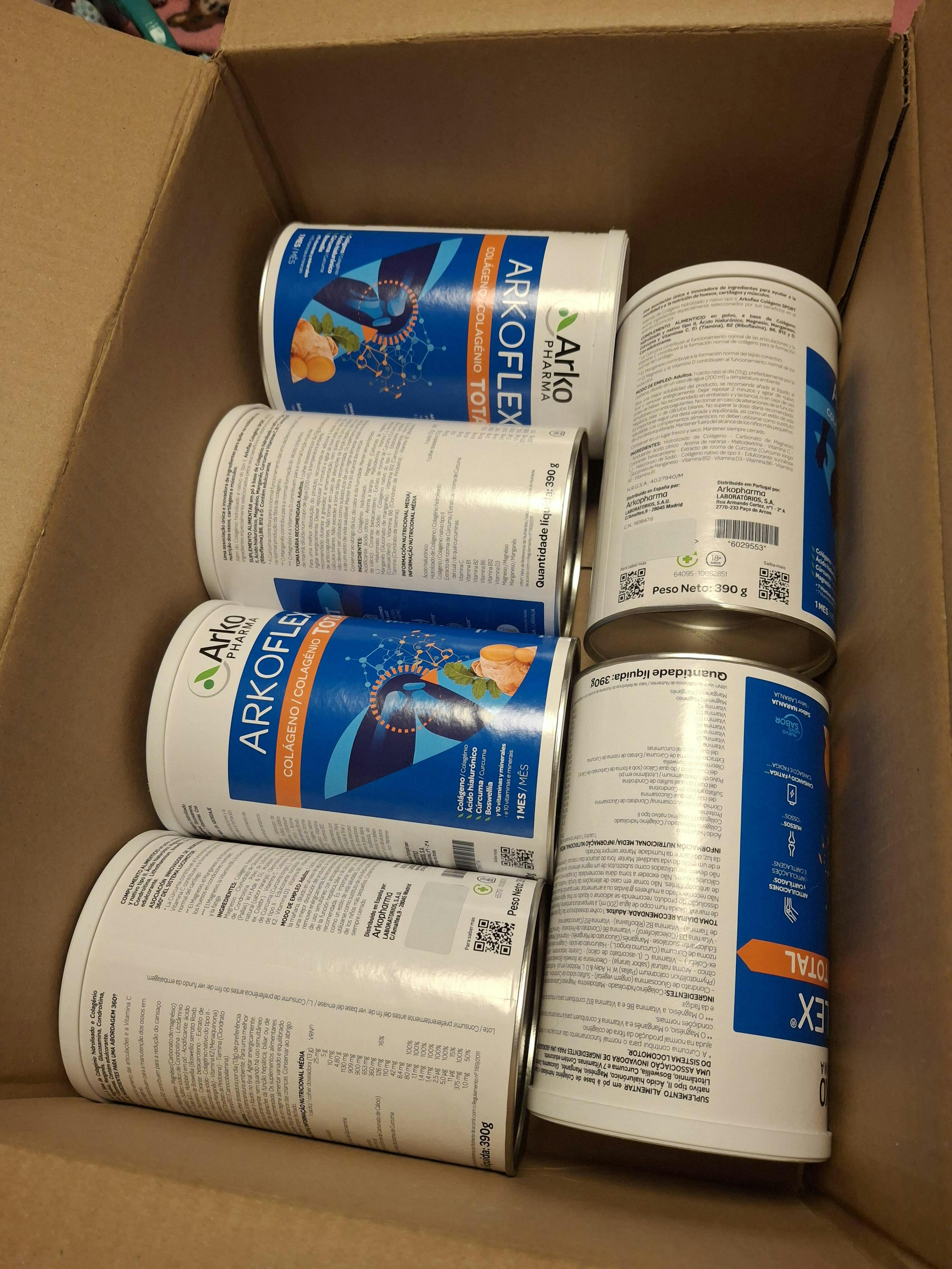 Arkoflex Arkoflex Colágeno Totales un complemento alimenticio en polvo, a base de Colágeno hidrolizado y tipo II nativo, Ácido hialurónico, Manganeso, Glucosamina, Controitina, además de una asociación de ingredientes especialmente seleccionados por sus beneficios en el aparato locomotor.