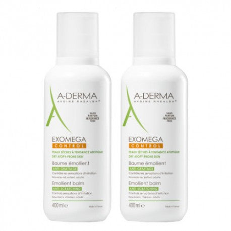 Cuidado emoliente específico de las pieles atópicas severas de zonas localizadas.A-Derma Exomega Control Bálsamo Emoliente Duplo 2x400ml está compuesto por Extracto de Plántulas de Avena Rhealba, BioVect, Filaxerine y vitamina B3, ingredientes de origen natural, para calmar la irritación y restaurar la barrera cutánea.