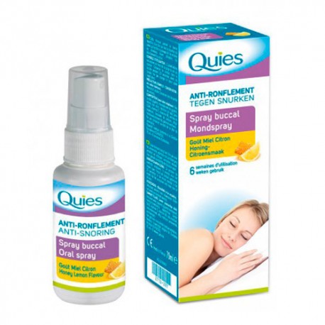 Spray antirronquido muy eficaz con un agradable sabor a miel con limón.Quies Spray Anti-Ronquidos 70 ml es un producto que actúa directamente sobre las causas que provocan los ronquidos. Gracias a la goma xantana, ayuda a lubricar el velo, evitando que se reproduzcan las vibraciones durante la respiración. Está formulado sin aceites vegetales y posee un agradable sabor a miel limón.