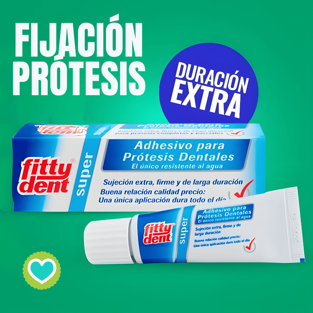 Efecto adhesivo resistente a la saliva.Fittydent Super Adhesivo 20g es una crema adhesiva que permite mantener unidas las prótesis dentales sin ningún problema. Su poder absorbente impide movimientos y deslizamientos entre prótesis. Al no disolverse con la saliva, su efecto dura más tiempo y sin perder intensidad. Al evitar posibles movimientos se reducen las irritaciones, molestias y rojeces que puedan aparecer en las encías.