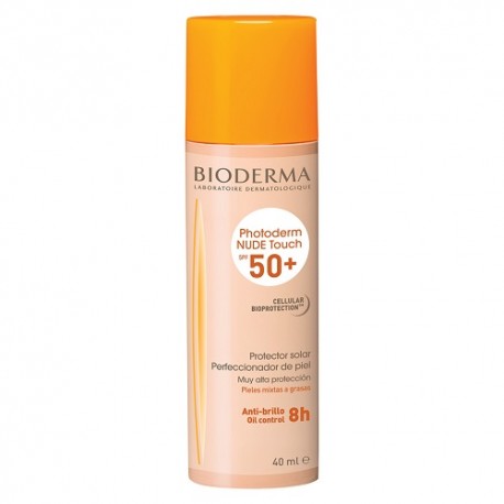 protector solar que combate los daños solares y protege la piel.Bioderma Photoderm NUDE Touch SPF50+ Color Dorado se trata de un fotoprotector en cuya fórmula encontramos la combinación de dos filtros minerales UVA/UVB capaces de proteger la piel de los daños provocados por los rayos UV desde su aplicación y durante un largo periodo. Además, contiene un suave color que nos dará un tono ideal. Puede ser utilizado tanto por pieles mixtas como grasas.
