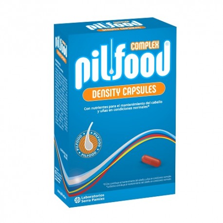 Pilfood Complex Density 60 Cápsulas son 60 cápsulas que ayudan a prevenir la caída el cabello y a fortalecer tus uñas por el desgastamiento debido a los cambios hormonales, una mala alimentación, el estrés, las sustancias químicas, o factores hereditarios. Ofrecen unos nutrientes que potencian la vitalidad y refuerzan el cabello evitando así su caída. Incluye aminoácidos, oligoelementos minerales y vitaminas que mantienen y refuerzan el cabello. Disolución fácil.