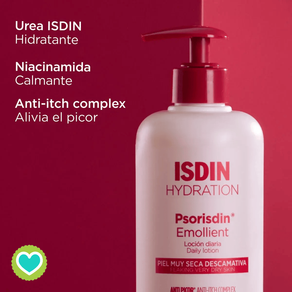 Isdin Psorisdin Psoriatic Loción 400 ml está indicada para personas que sufren de psoriasis.