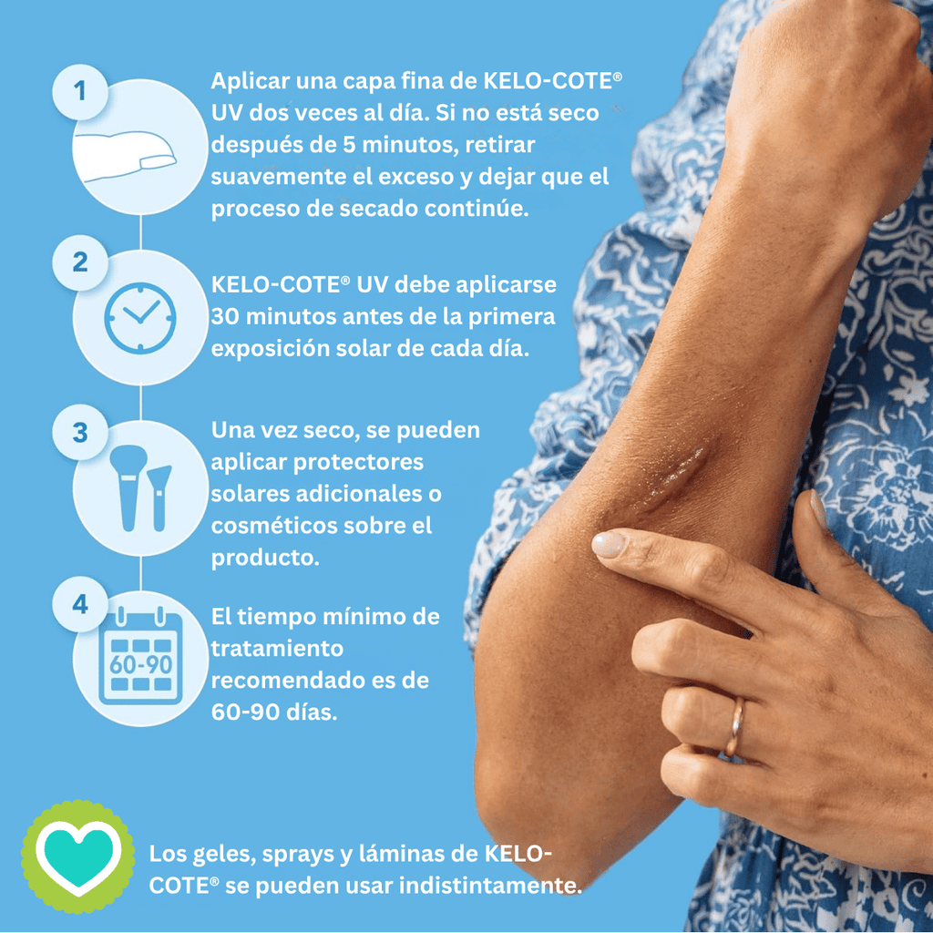 Kelo-Cote UV es un gel de silicona de referencia mundial en el cuidado cosmético de cicatrices.