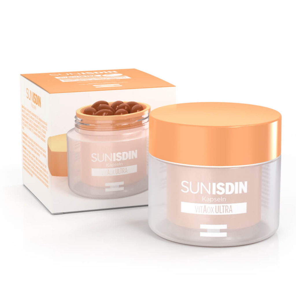 SunIsdin 30 Cápsulas contienen vitamina D, C y E además de luteína, selenio, licopeno y té verde, entre otros componentes. Esta composición favorece el normal funcionamiento del sistema inmunitario al mismo tiempo que protege la piel del daño solar y las células frente al daño oxidativo. Son ideales para preparar la piel para el baño solar.